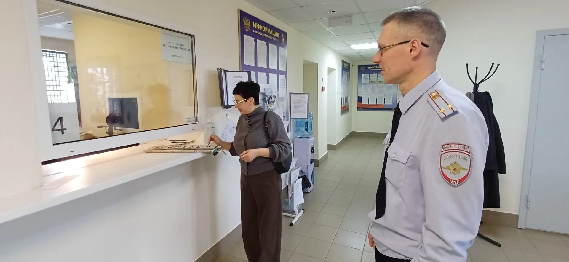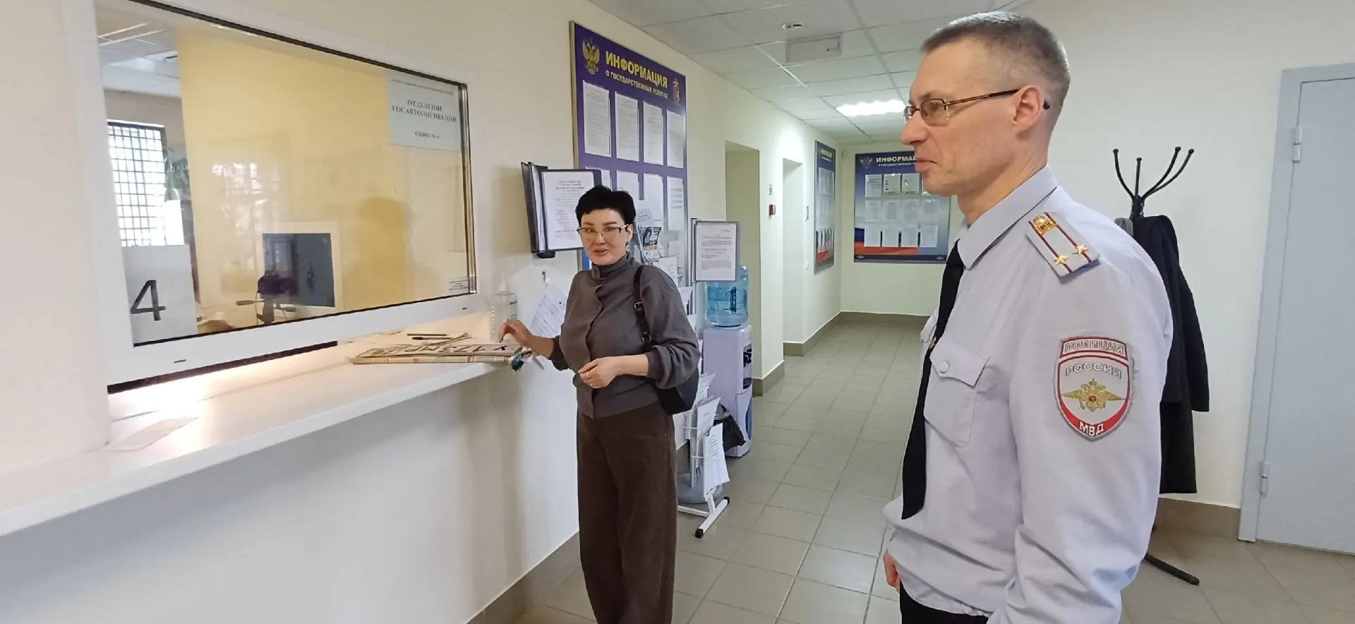 Заместитель начальника полиции по охране общественного порядка Сергей Карелин ознакомил проверяющую с помещениями подразделений, рассказал об основных направлениях деятельности, о видах оказываемых населению государственных услуг, показал наличие бланков заявлений и памяток на стендах, образцов для заполнения, разъяснил алгоритм получения госуслуг. В подразделениях Елизавета Анатольевна непосредственно пообщалась с сотрудниками и могла наблюдать процесс предоставления государственных услуг в регистрационно-экзаменационном подразделении.