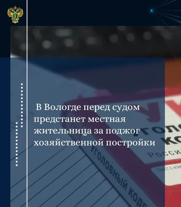 Прокуратурой города Вологды утверждено обвинительное заключение по уголовному делу в отношении ранее не судимой 54-летней жительницы города Вологды. Она обвиняется по ч. 2 ст. 167 УК РФ (умышленное уничтожение или повреждение чужого имущества путем поджога, повлекшее причинение значительного ущерба).