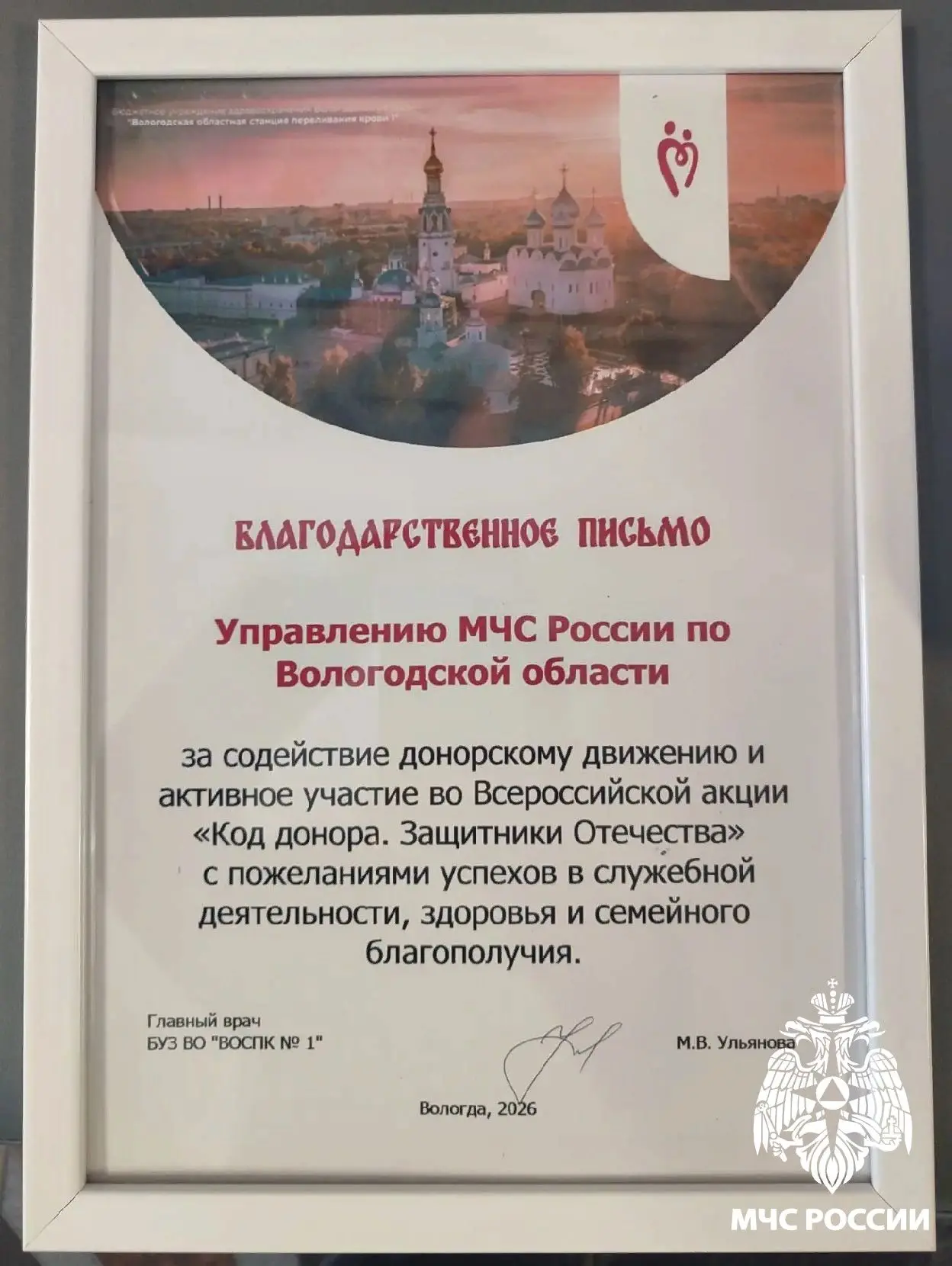 Также был отмечен вклад организаторов донорских акций и членов общественного совета по пропаганде донорского движения на предприятиях и в организациях области. Главное управление МЧС России по Вологодской области в них представляет Марина Бахтина. Главному управлению вручено благодарственное письмо за содействие донорскому движению и активное участие во Всероссийской акции «Код донора. Защитники Отечества».