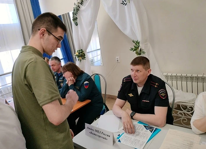 Кроме того, вытегорские полицейские приняли участие в окружной ярмарке вакансий. В рамках работы ярмарки руководитель группы по работе с личным составом ОМВД России «Вытегорский» представил актуальный перечень вакантных должностей. Представитель отдела полиции подробно ознакомил соискателей с порядком поступления на службу, квалификационными требованиями к кандидатам, а также системой социальных гарантий, предусмотренных для сотрудников органов внутренних дел. В ходе консультаций особое внимание было уделено выпускникам общеобразовательных школ и средних специальных учебных заведений.