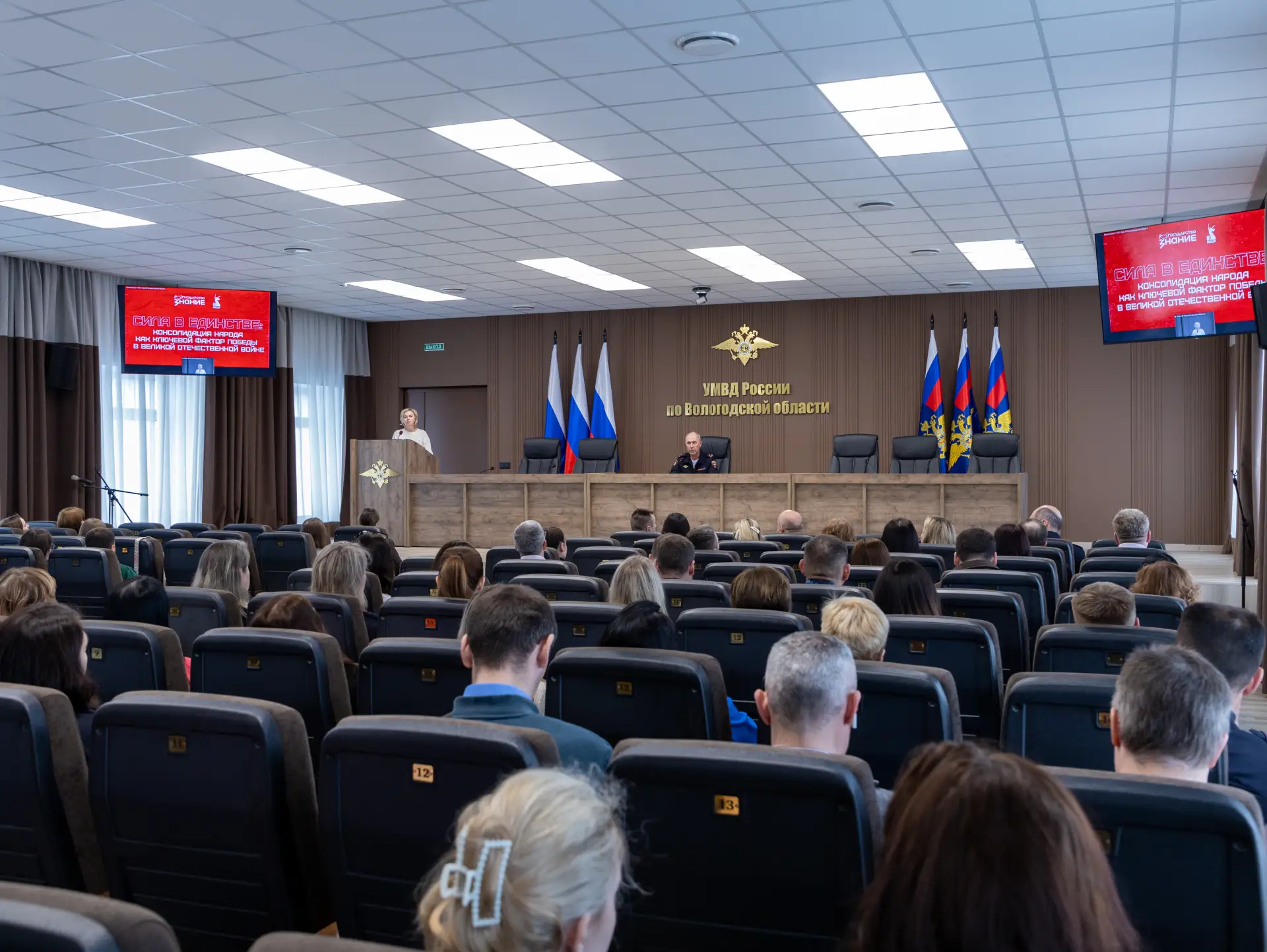 Сегодня лектор российского общества «Знание», кандидат исторических наук, заведующая кафедрой теории, истории культуры и этнологии Вологодского государственного университета, член Общественного совета при УМВД России по Вологодской области Ирина Спасенкова выступила с лекцией для полицейских. Встреча была посвящена 81-й годовщине Победы в Великой Отечественной войне.