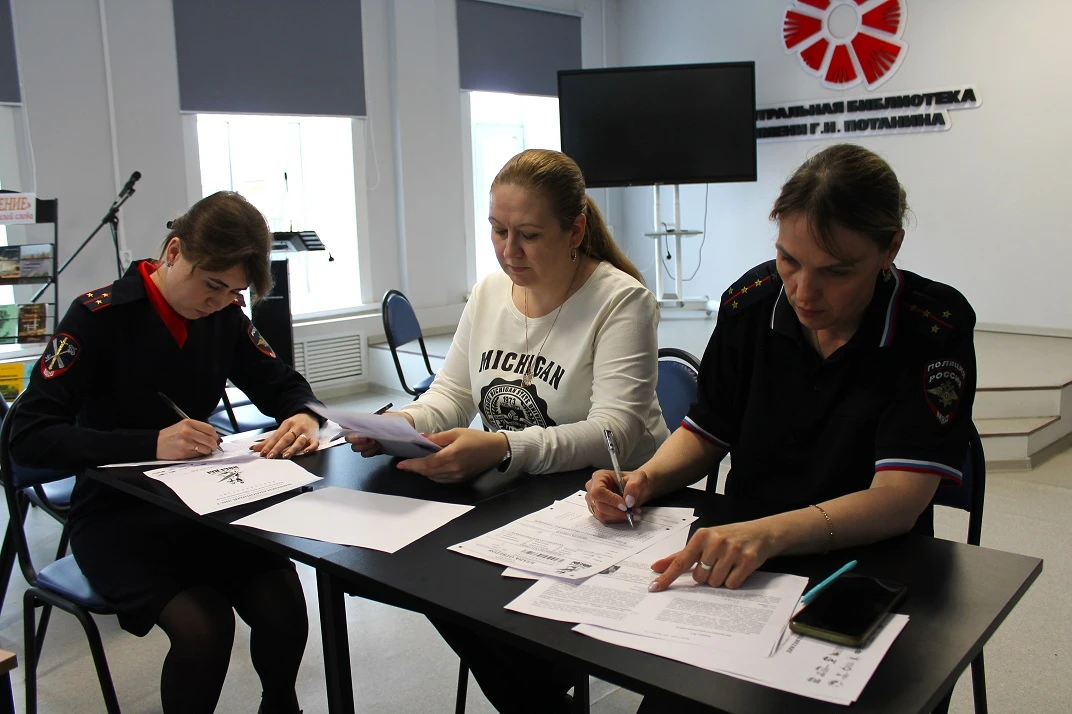 В Никольске сотрудники полиции и кадеты написали «Диктант Победы - 2026». Мероприятие прошло в Центральной библиотеке имени Г.Н. Потанина под руководством специалиста библиотеки Елены Цыпышевой. Участникам было предложено 25 вопросов на различные темы, связанные с важными сражениями Великой Отечественной войны, выдающимися историческими личностями, культурным наследием военных лет.