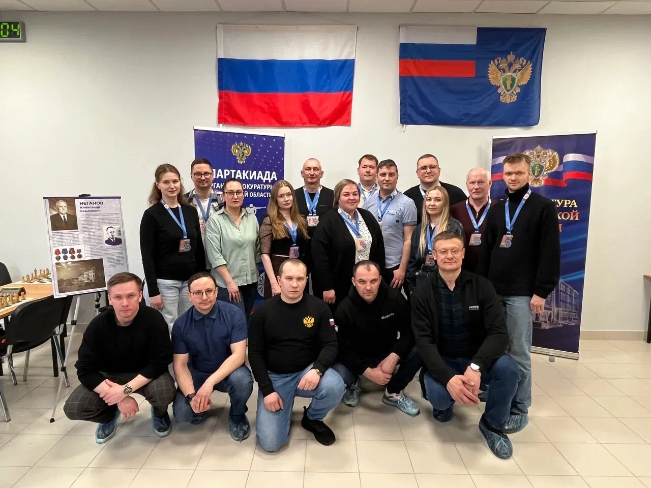 Победители и участники соревнований по шахматам награждены медалями.