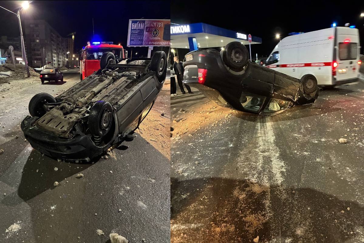 В Череповце врезавшаяся в столб иномарка перевернулась на крышу
