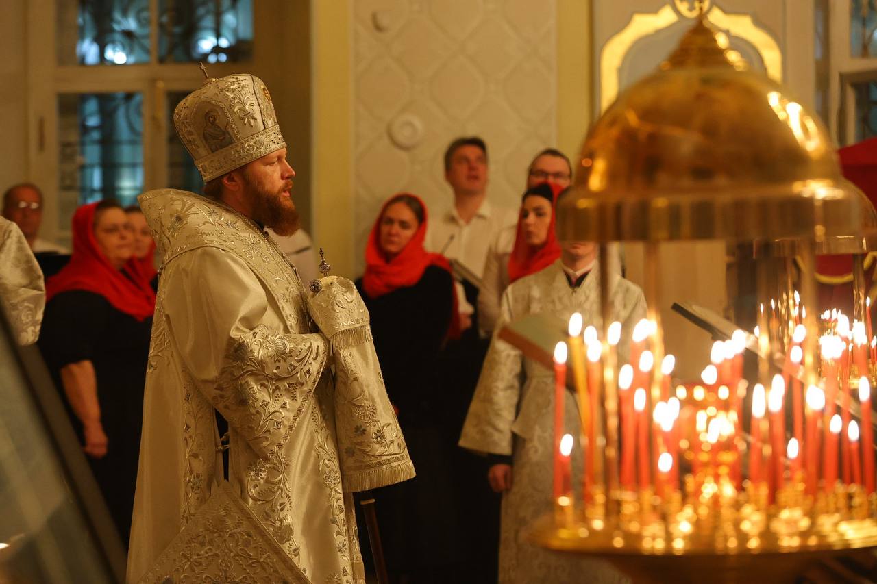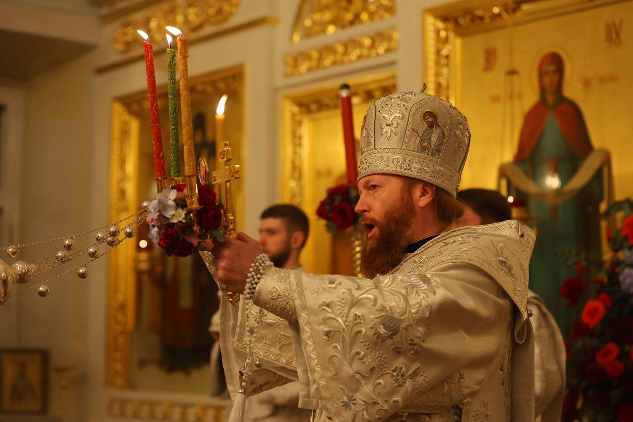 Ещё несколько фото с ночного богослужения в Воскресенском соборе.