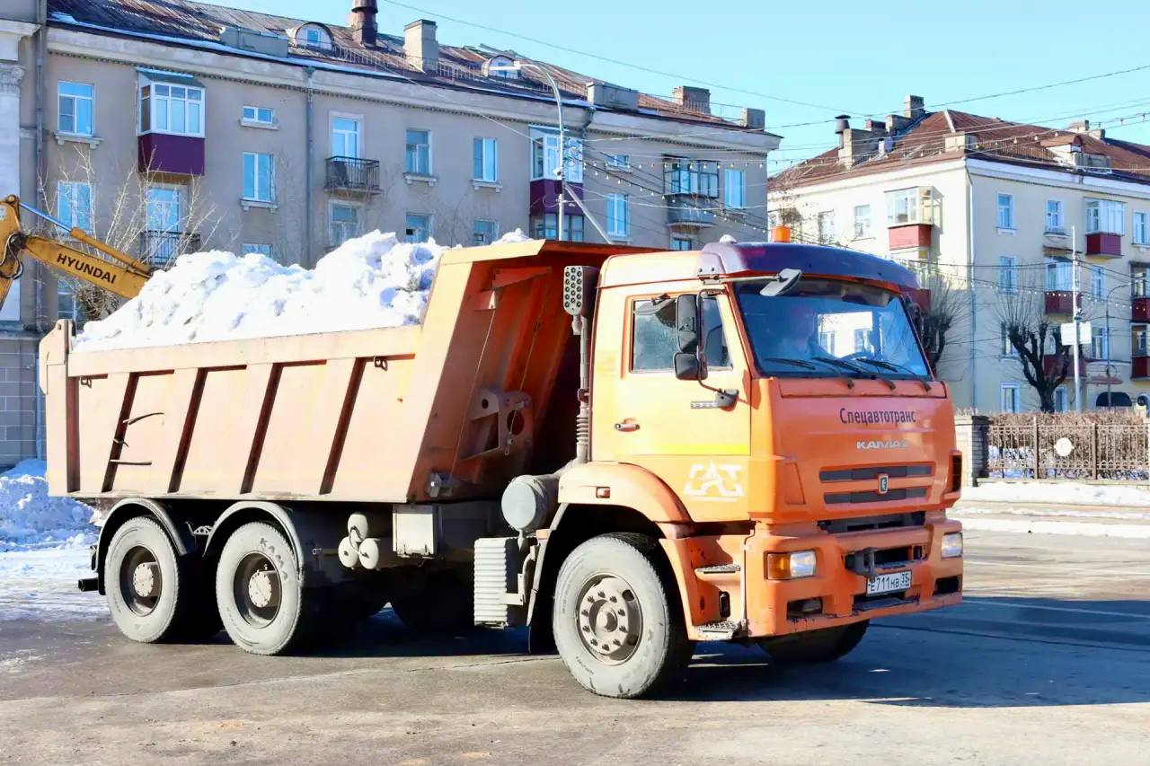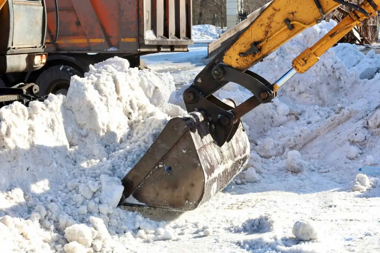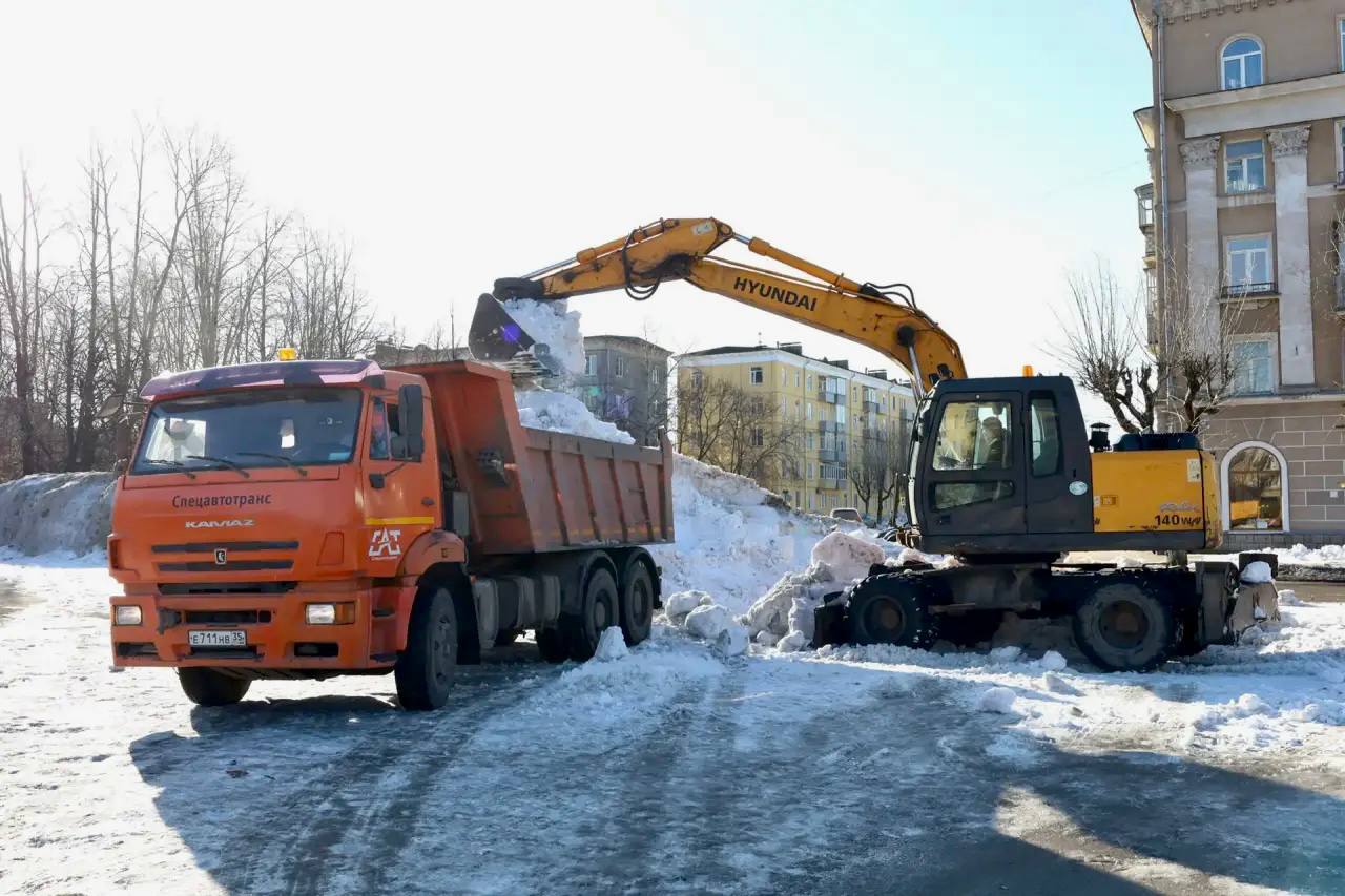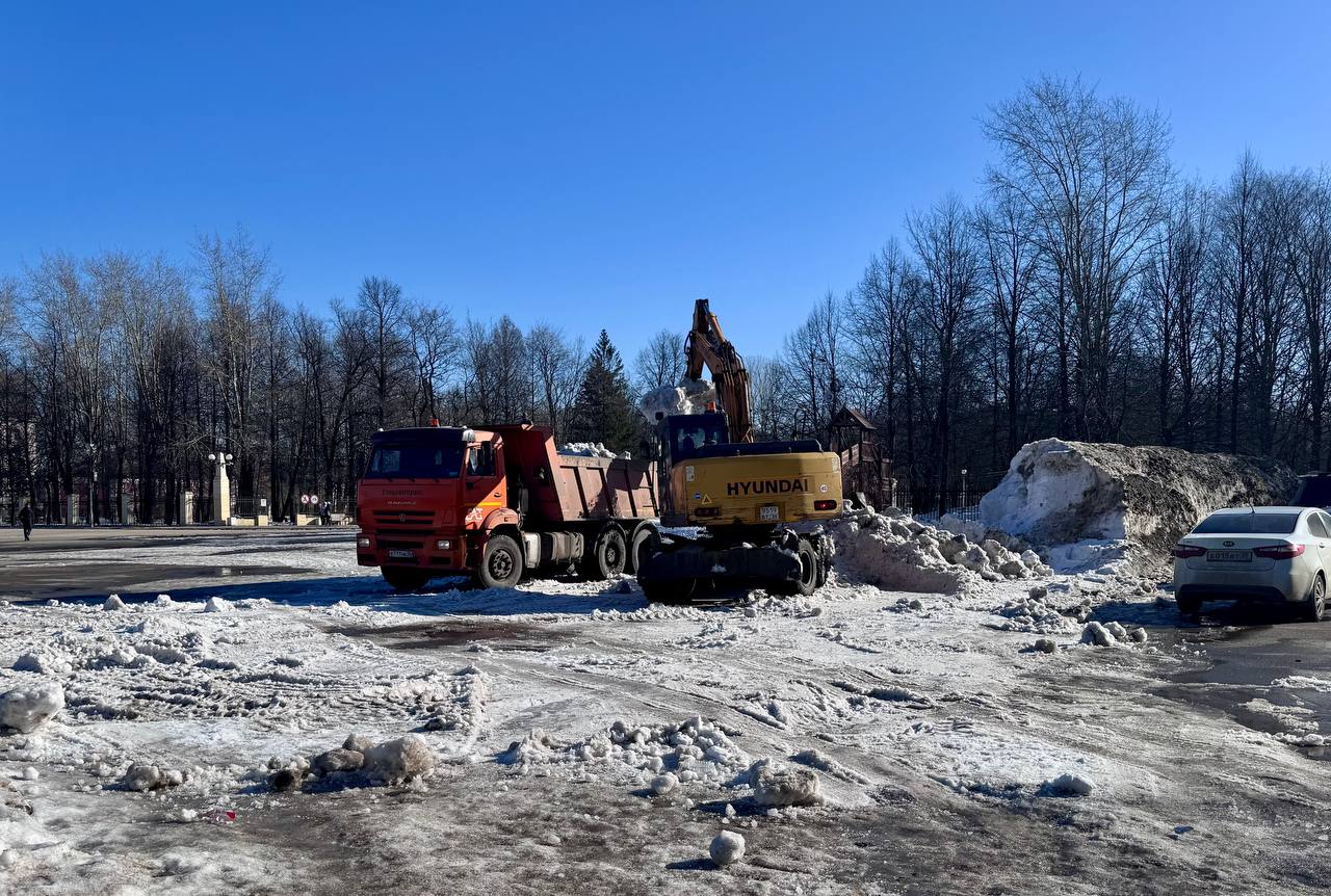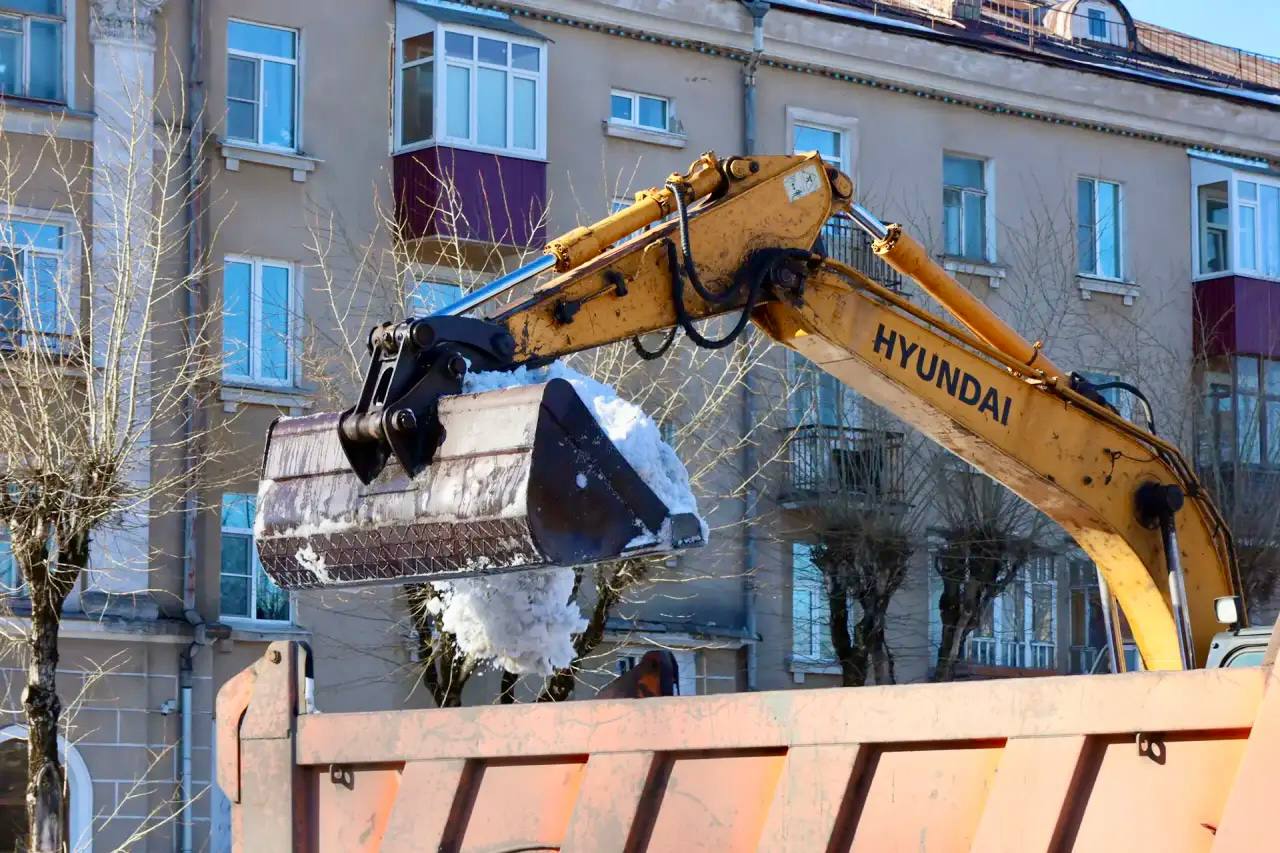 МКУ «Спецавтотранс» продолжает работы по уборке снежных валов на городских площадях. В выходные завершена уборка снежных заграждений на площади Химиков, сегодня продолжаются работы на площади Металлургов.