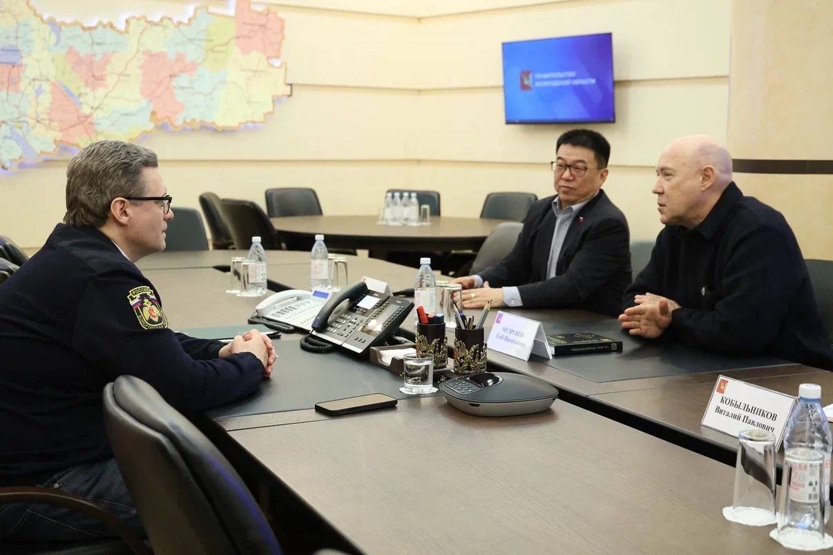 Губернатор Георгий Филимонов встретился с признанным знатоком культуры Китая, почетным членом Исинской отраслевой ассоциации керамики Глебом Музруковым и представителем Вологодской области в провинции Шэньси Тан Ханем.