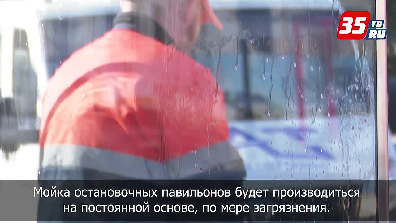 Остановки общественного транспорта моют в Череповце