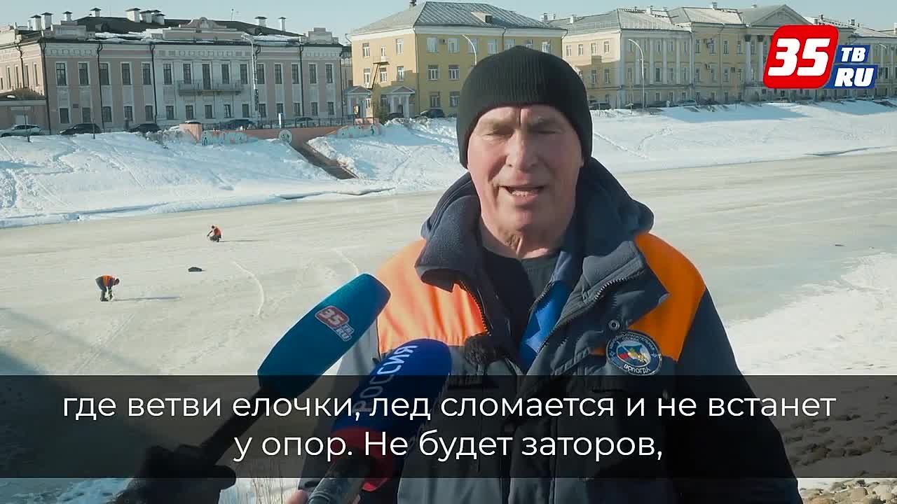 Спасатели начали ледорезные работы и чернение на реке Вологде