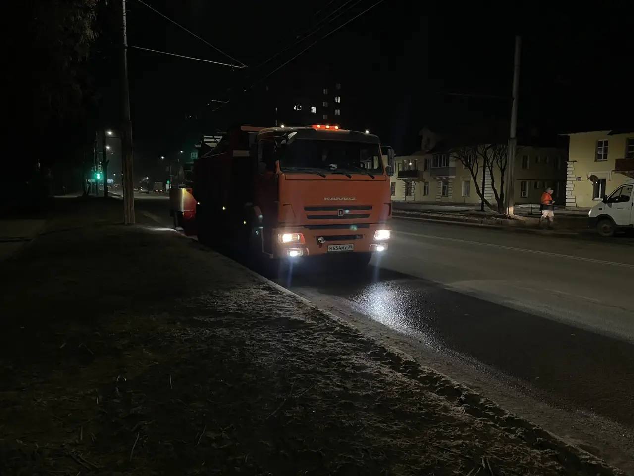 В дневную смену на уборке города было задействовано 60 единиц специальной техники, на ликвидации подтоплений работали 8 бригад (32 человека) и 13 единиц техники «Вологдагорводоканала».