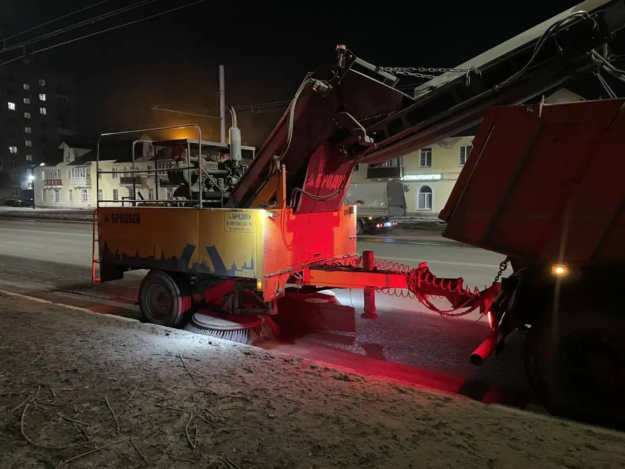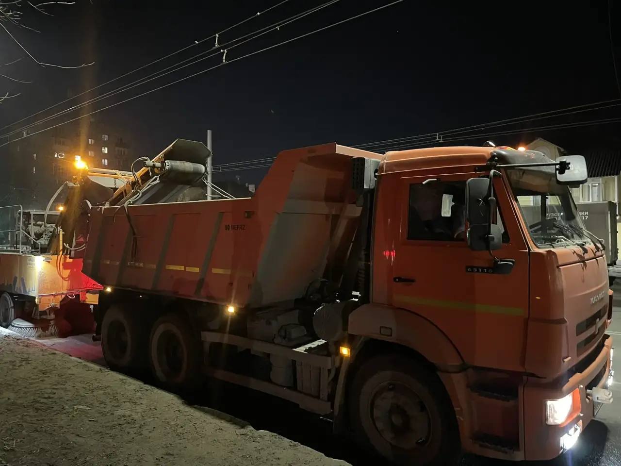 Всего за смену вывезено 560 м снега и 100 м смёта, вымыто 28 остановок.