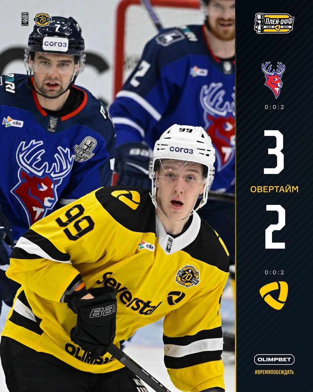 В начале третьего периода череповчане забили две шайбы. Нижегородцы отыгрались, сняв вратаря, - 2:2.
