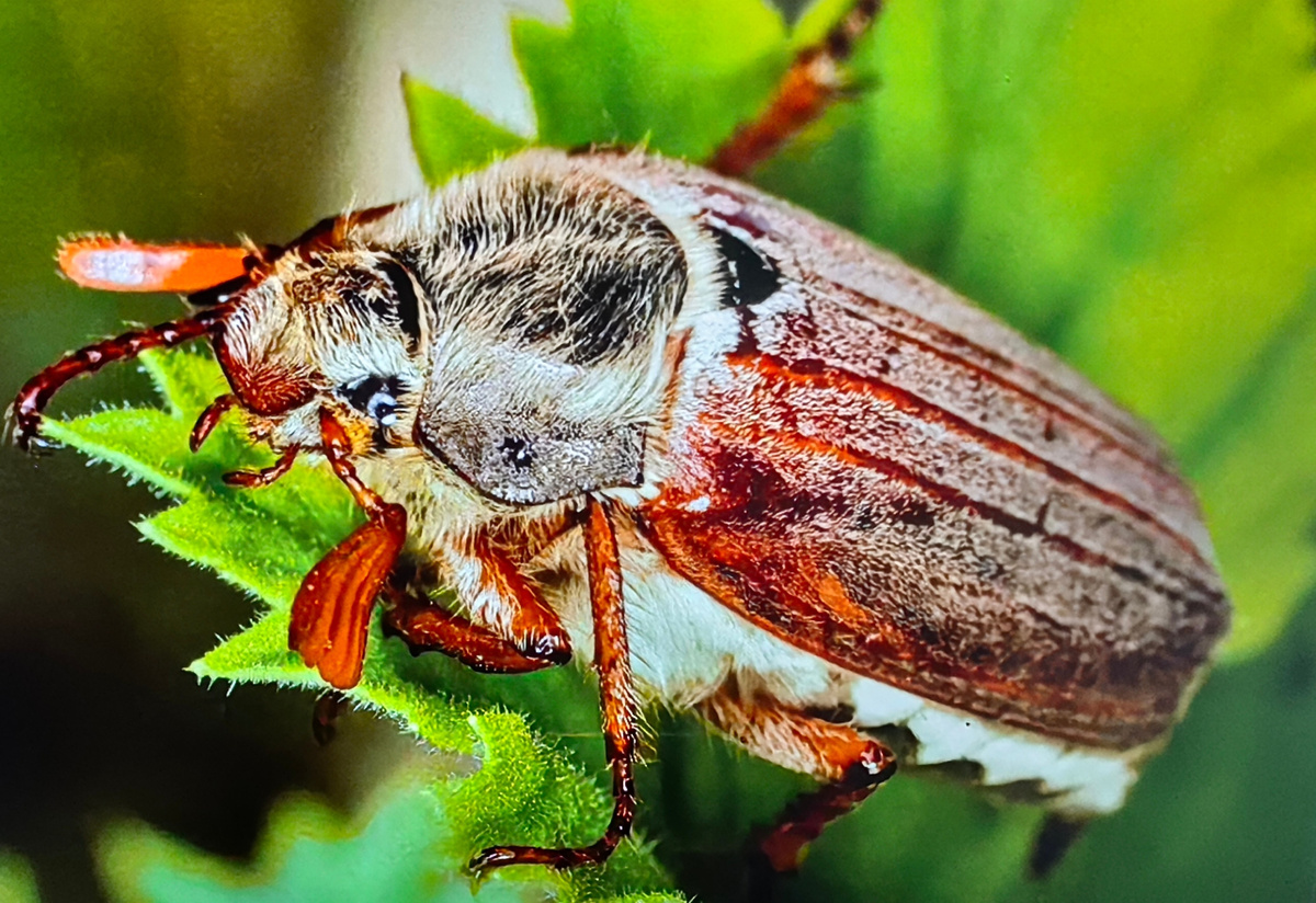 Майский жук, или хрущ, в народе легко узнаваем: это крупное насекомое до 2 см в длину с коричневыми надкрыльями и пухлым брюшком. Они неловко летают, врезаясь во всё на своём пути. Мало кто знает, что до этого они изображали из себя пушистых личинок – именно они наносят основной вред, поедая корни растений.