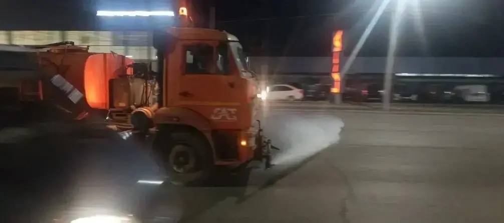 На уборку города силами подрядных организаций в дневную смену было выведено 26 единиц техники и 95 работников ручного труда. Смета убрано 143 м3.