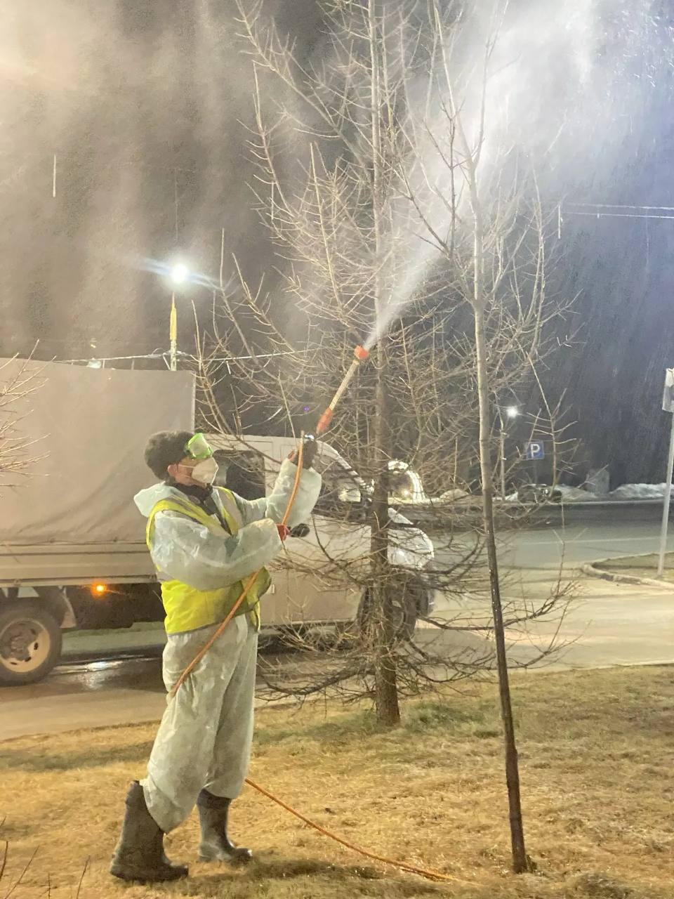 Пока почки еще не распустились, специалисты «Горзеленстроя» обрабатывают деревья на Советском проспекте и других улицах. Используют медный купорос, чтобы уничтожить споры грибков и бактерий, которые перезимовали в трещинах коры. Если опоздать, раствор сожжет молодую листву.