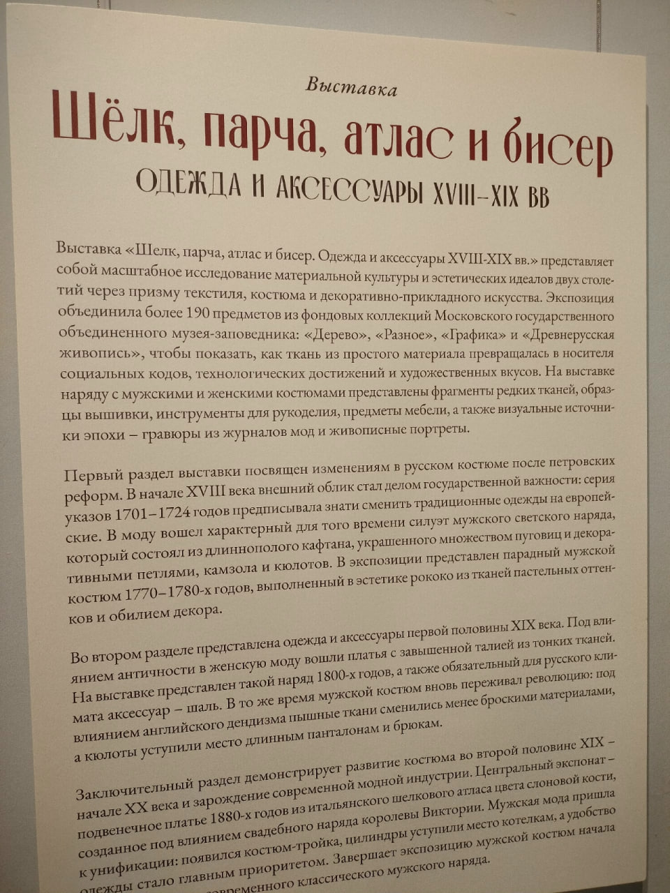 Уже завтра там откроется познавательная выставка «Шёлк, парча, атлас и бисер. Одежда и аксессуары XIII-XIX вв.». Обязательно заглядывайте!