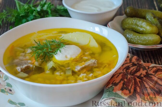 Рассольник с говядиной и перловкой наполнит любителей остро-солёного вкусом. Этот суп может быстро исчезнуть со стола благодаря своему невероятному аромату и насыщенному бульону. Все ингредиенты отлично дополняют друг друга, создавая гармоничную композицию.