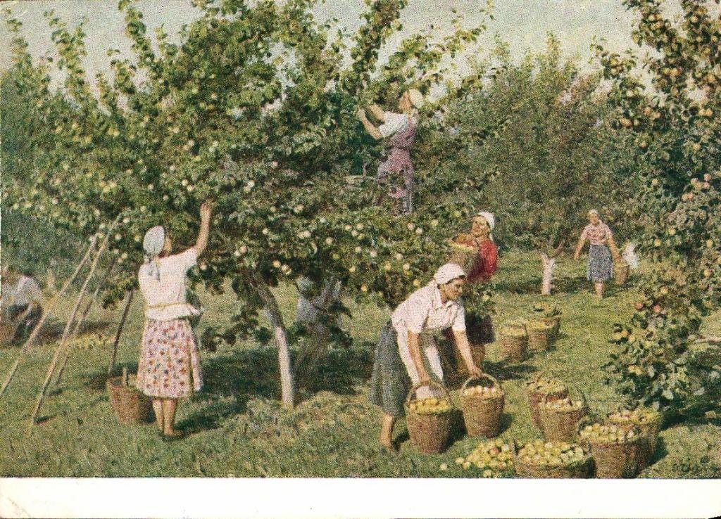 «Сбор яблок» Ольги Григорьевой Светличной, 1953