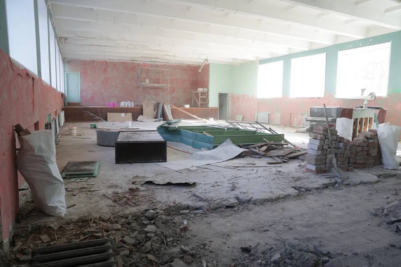 В школе учатся больше 700 детей. Сейчас они распределены по ближайшим школам и детсадам. Задача — открыть обновленную школу к новому учебному году.