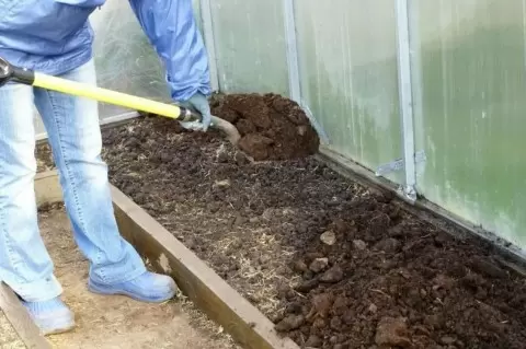 Компост или перегной, в свою очередь, являются ценными добавками для земли. Разбросайте ведро на 2–3 кв. м. и слегка заделайте в верхний слой. Садоводы, которые в прошлом сезоне удобрили теплицы перегноем осенью, получили ранние и дружные всходы благодаря рыхлой и теплой почве.