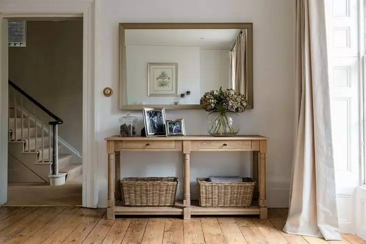 - Консольные столики: Эти стильные предметы мебели идеально подходят для хранения мелочей, таких как ключи и пачки с почтой. Они не занимают много места, создавая уют и порядок.