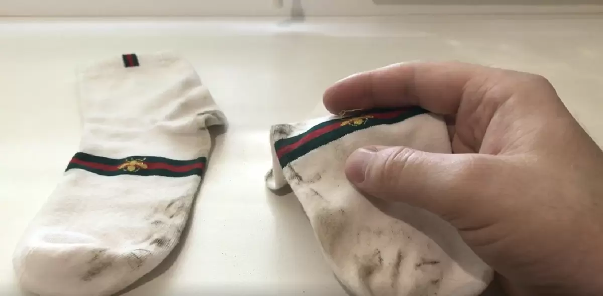 После этого оставьте носки в покое — дайте смеси немного повременить. Время ожидания зависит от степени загрязнения: чем больше грязи, тем дольше следует оставить носки. Спустя несколько минут можно наблюдать, как желтизна начинает исчезать. Некоторые пятна могут остаться, но не паникуйте — они будут устранены в процессе.