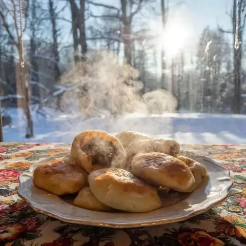Замешанное тесто надо оставить в тепле — оно должно увеличиться в объеме. После этого тесто делят на небольшие части и раскатывают. В каждую лепешку помещают начинку, краям придают форму, оставляя небольшое «окошко» для выхода пара.