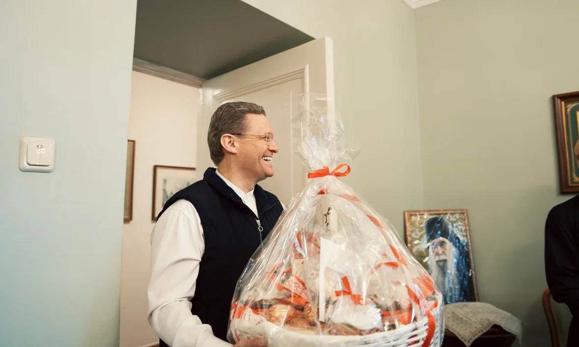 Приехали с пасхальными дарами для церковной братии.Куличи, крашеные яйца — символ Пасхи. Сегодня, после завершения Великого поста, они на столе в каждой семье.