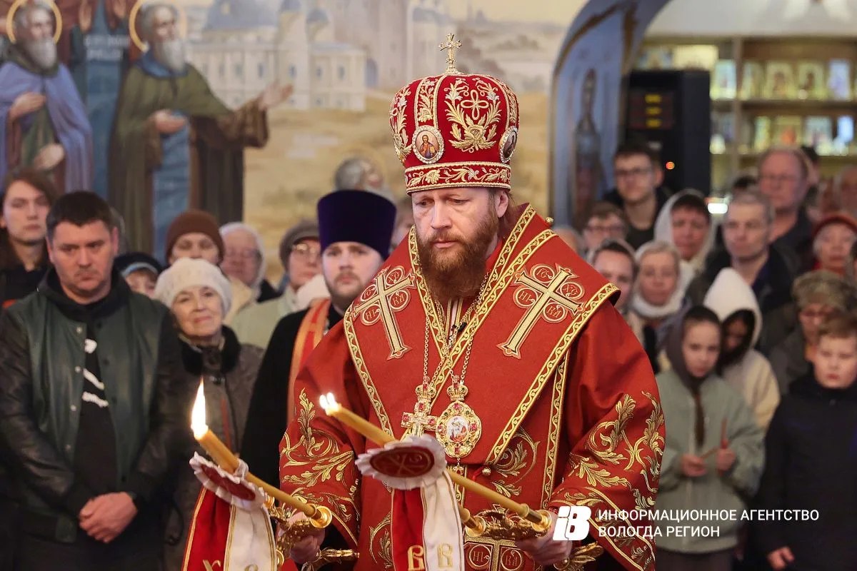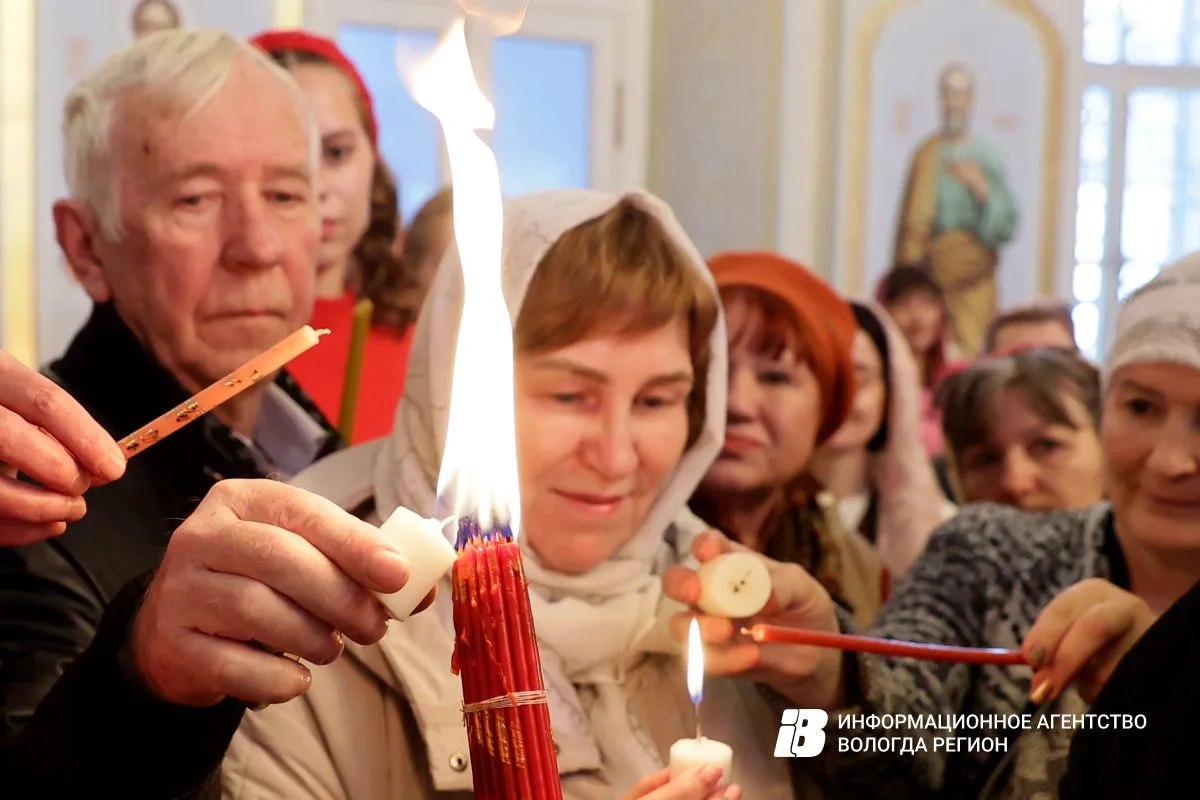 Торжества продолжились в Воскресенском кафедральном соборе Великой пасхальной вечерней. Этот Благодатный огонь развезут по всем районам Вологодской области.