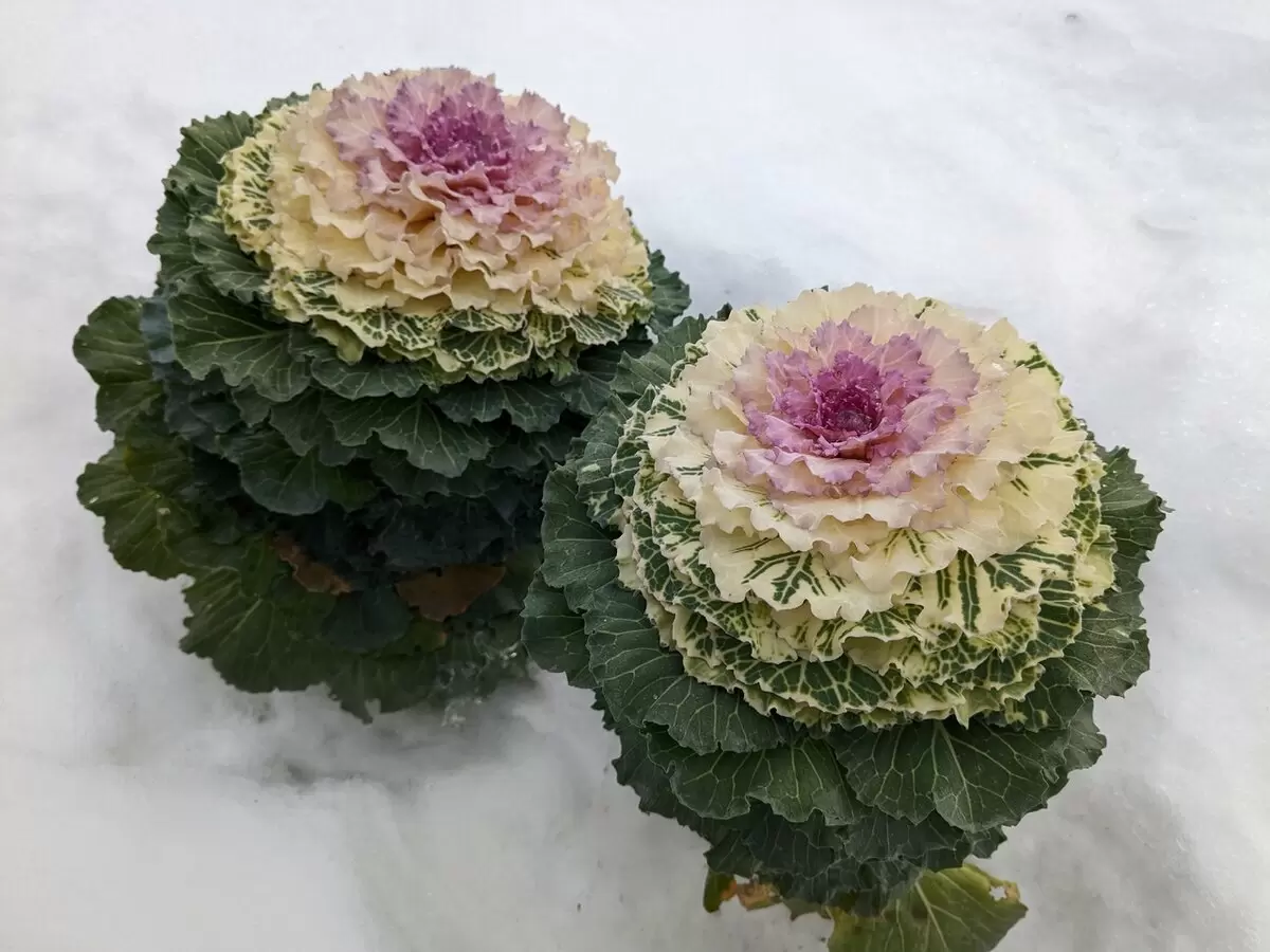 - Устойчивость к холодам: Декоративная капуста сохраняет свою оригинальность до 15 градусов мороза и может выдерживать снежный покров.
