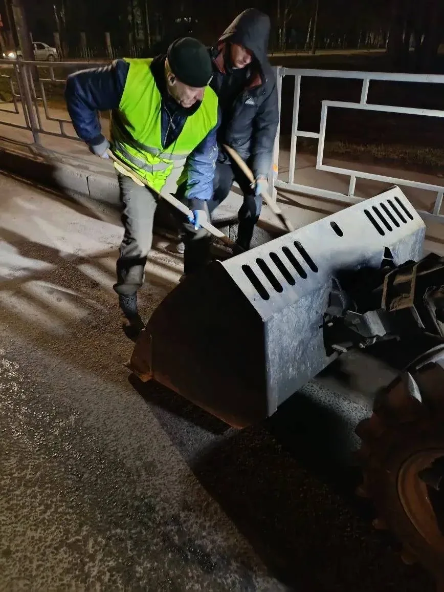 В дневную смену для уборки было задействовано 49 единиц специальной техники, 137 работников на ручном труде, в том числе: 16 – на уборке парковых зон (+ 3 единицы техники), 25 – на профилактике подтоплений (5 бригад + 6 единиц техники), 800 дворников управляющих компаний.