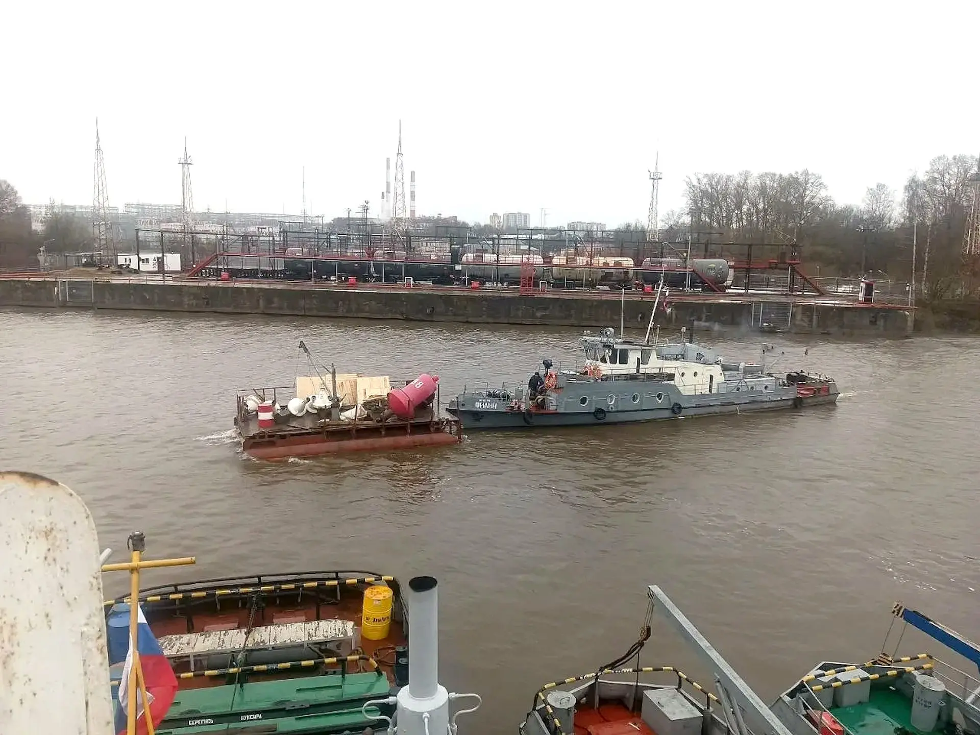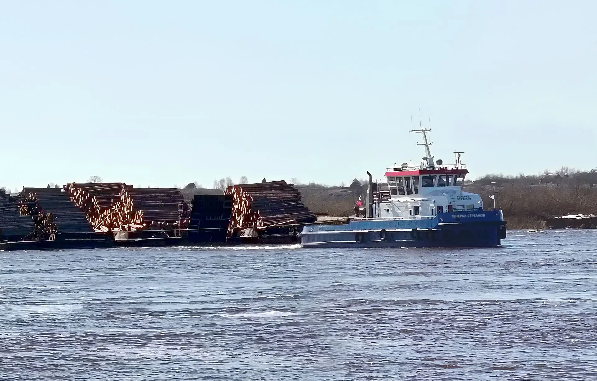 Первые транзитные суда с караванами барж двинулись по реке Северная Двина до города Архангельск.