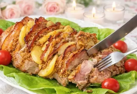 Когда хочется порадовать себя и близких отменным мясным блюдом, но нет времени на долгую подготовку, свинина гармошка станет настоящим спасением. Сочный, пропитанный соусом кусок свинины образует аппетитную корочку, а картофель и бекон, запеченные внутри, делают его еще более гармоничным.