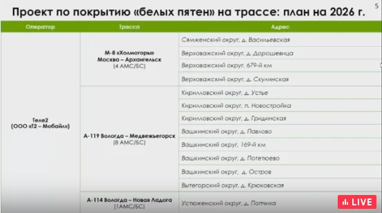 Александр Бурыкин, заместитель Губернатора Вологодской области, докладывает о работе по покрытию «белых пятен» на федеральных трассах в 2026 году