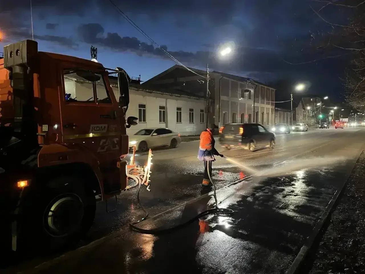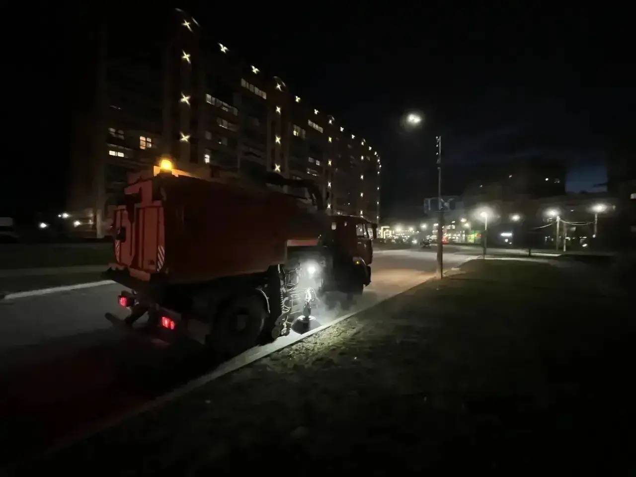 В ночную смену 17.04.2026-18.04.2026 на уборку города Череповца выведено 28 единиц техники:
