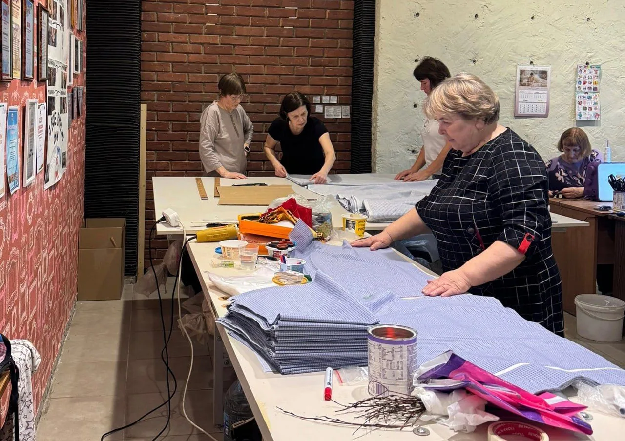 Особое внимание уделили вещам: в швейной мастерской сшили 250 комплектов нательного белья и 200 банных полотенец. Также добровольцы сплели 100 маскировочных сетей.