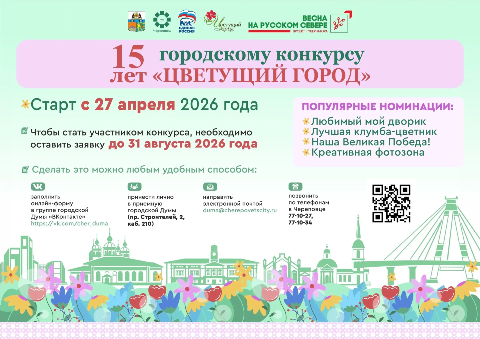 В Череповце стартовал конкурс «Цветущий город» с призовым фондом в 3 млн рублей